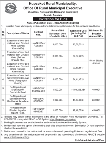 बोलपत्र आह्वान सम्बन्धि सूचना!!!