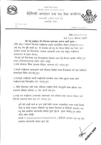 वर्ड फ्लु (H5N1) रोग सम्बन्धमा अत्यन्त जरुरी सूचना!!!