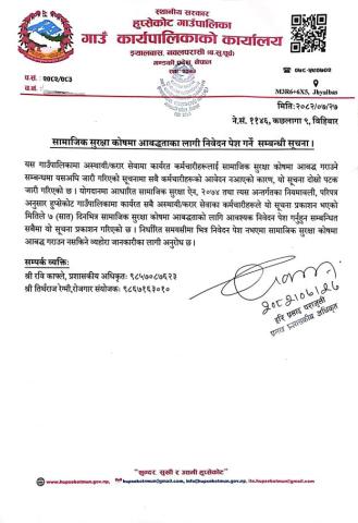 सामाजिक सुरक्षा कोषमा आबद्धताका लागि निवेदन पेश गर्ने सम्बन्धी सूचना!!!
