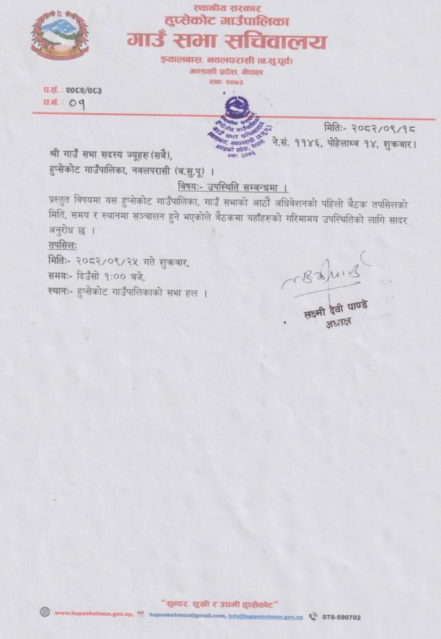 हुप्सकाेट गाउँपालिका, गाउँ सभाको आठौँ अधिवेशनको पहिलो बैठकमा उपस्थिति सम्बन्धमा।
