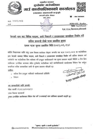 भकारो सुधार कार्यक्रम सम्बन्धि प्रथम पटक प्रकाशित सूचना (मिति २०७६/०८/२५ )