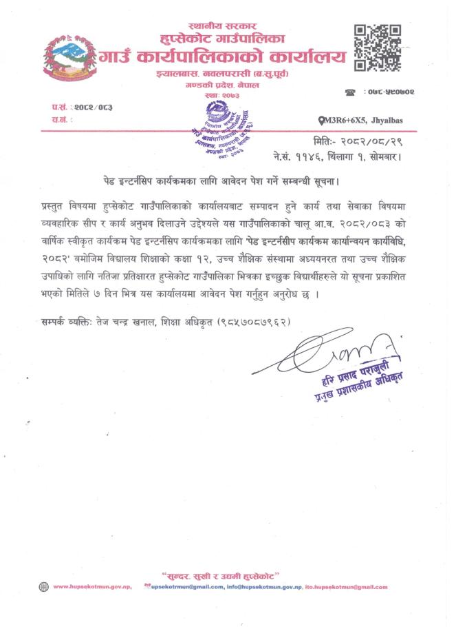 पेड इन्टर्नसिप कार्यक्रमका लागि आवेदन पेश गर्ने सम्बन्धी सूचना!!!