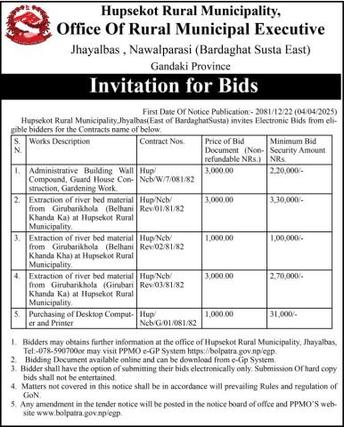 बोलपत्र आह्वान सम्बन्धि सूचना!!!