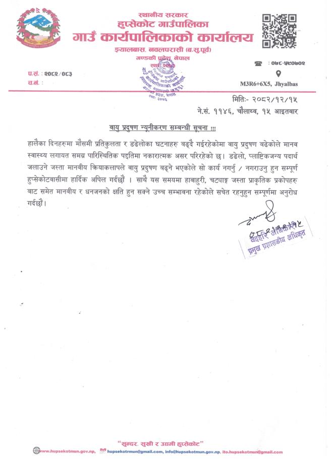 वायु प्रदुषण न्युनीकरण सम्बन्धी सूचना!!!