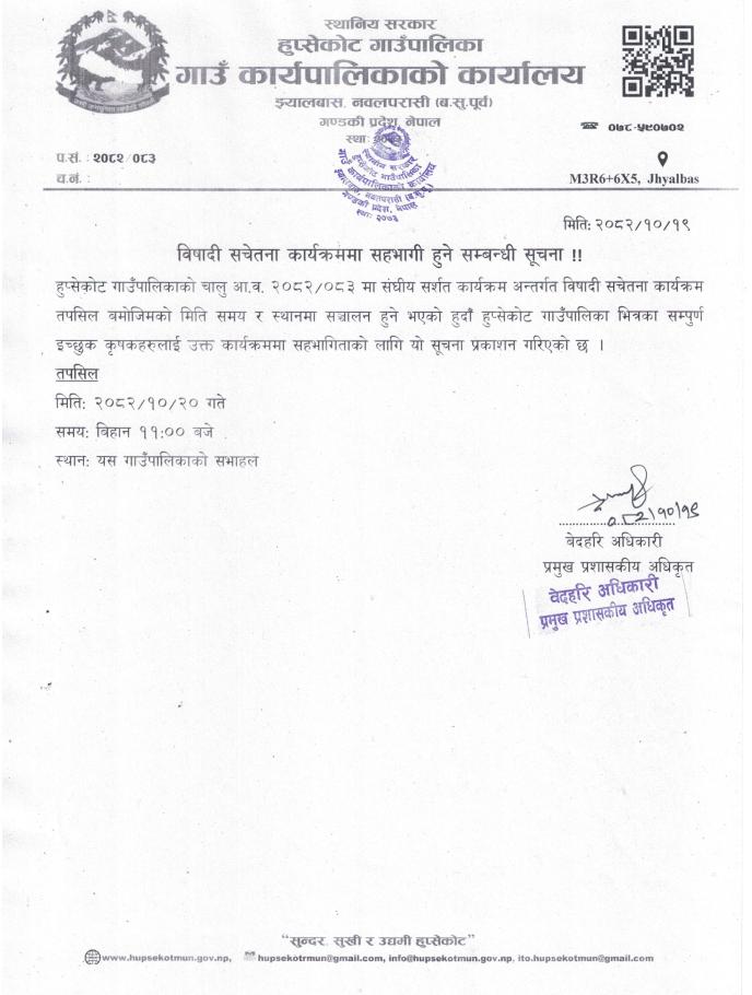 शिविर संचालन हुने सम्बन्धी सूचना!!!