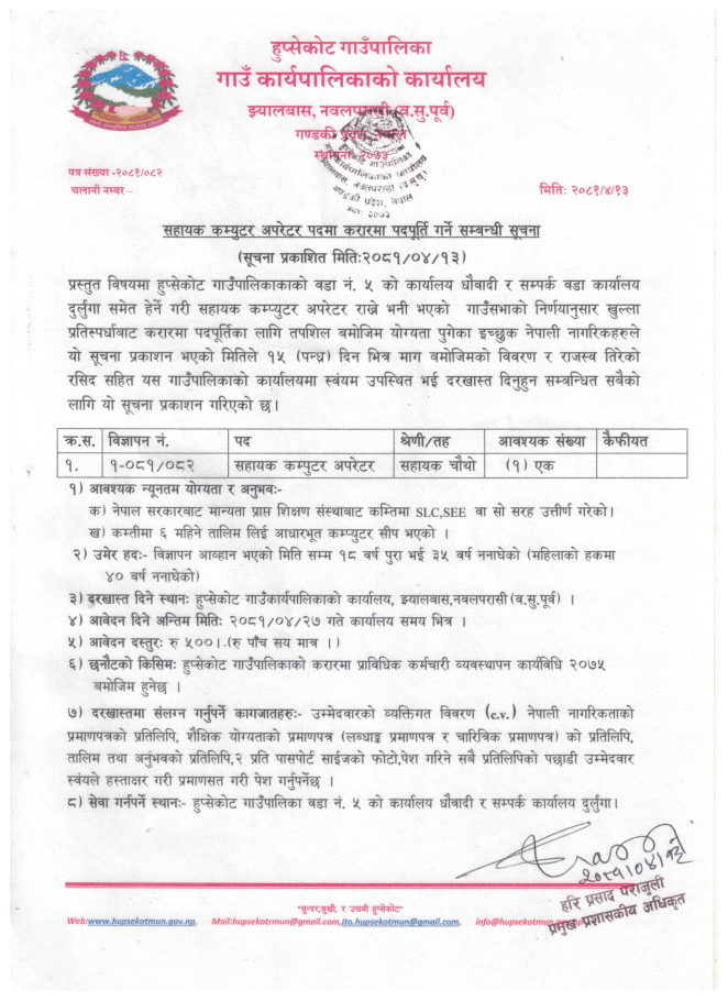 » सहायक कम्प्युटर अपरेटर पदमा करारमा पदपुर्ति गर्ने सम्बन्धी सूचना!!!