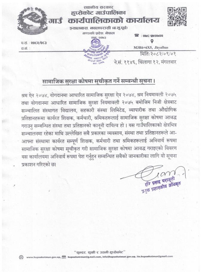 » सामाजिक सुरक्षा कोषमा सूचिकृत गर्ने सम्बन्धी सूचना!!!