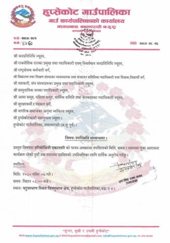 » हरिबोधनी एकादशी २०८० सालको पूजा आराधना कार्यक्रममा उपस्थिति सम्बन्धमा।