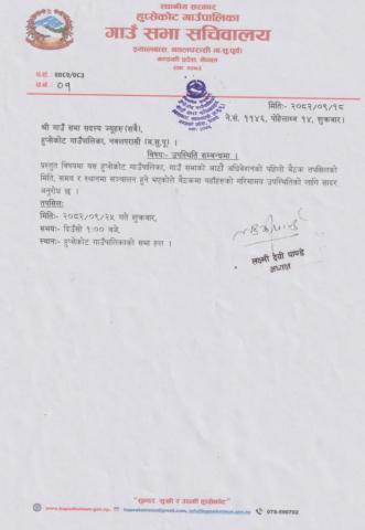 हुप्सकाेट गाउँपालिका, गाउँ सभाको आठौँ अधिवेशनको पहिलो बैठकमा उपस्थिति सम्बन्धमा।